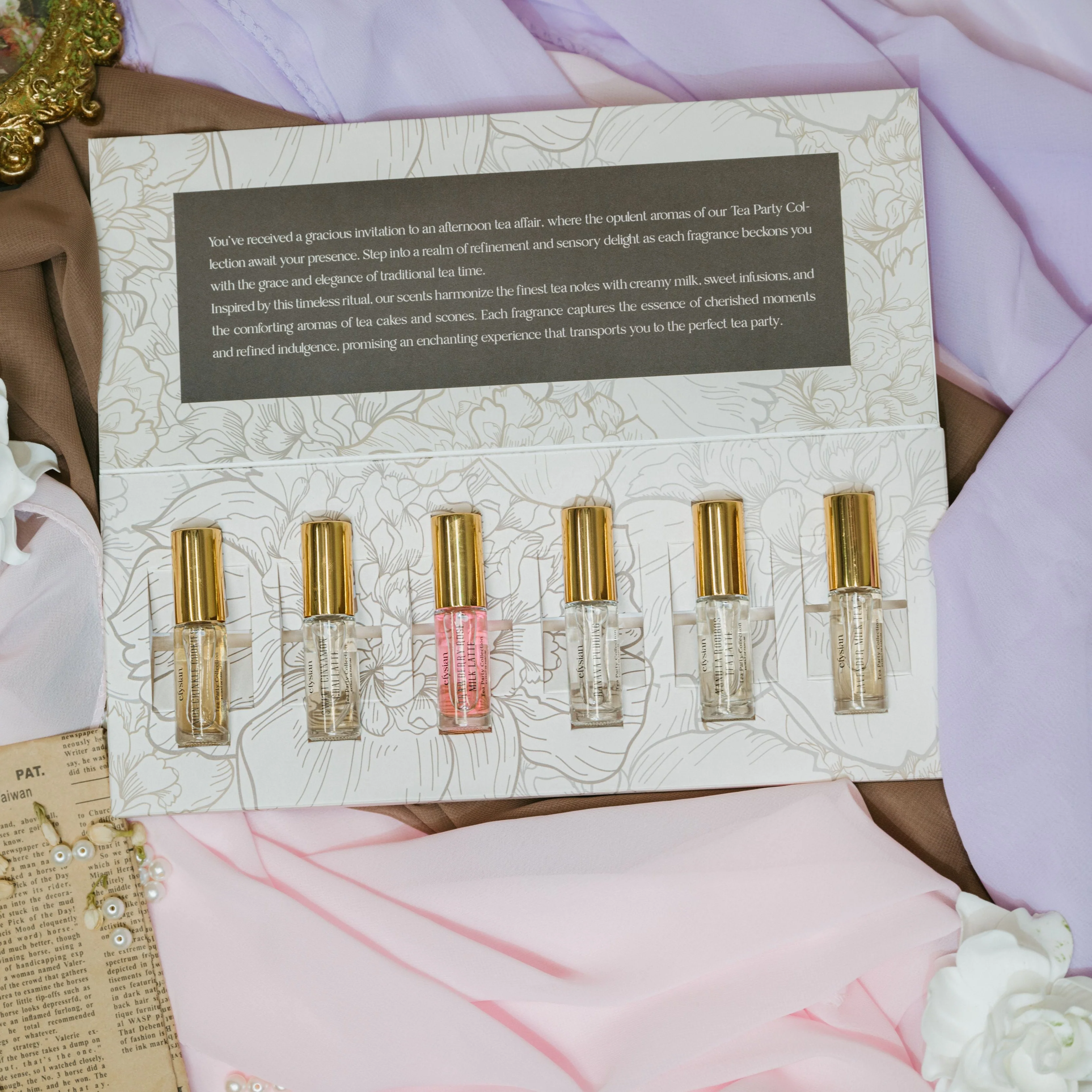 This exclusive tasting set features all six (5ml) travel fragrances fromĀ Tea Party Volume I, carefully crafted for the fragrance enthusiast who seeks an unforgettable journey through delectable treats and cozy sips.Ā Each fragrance comes in generousĀ 5mlĀ travel size, giving you a total ofĀ 30ml to explore and enjoy.