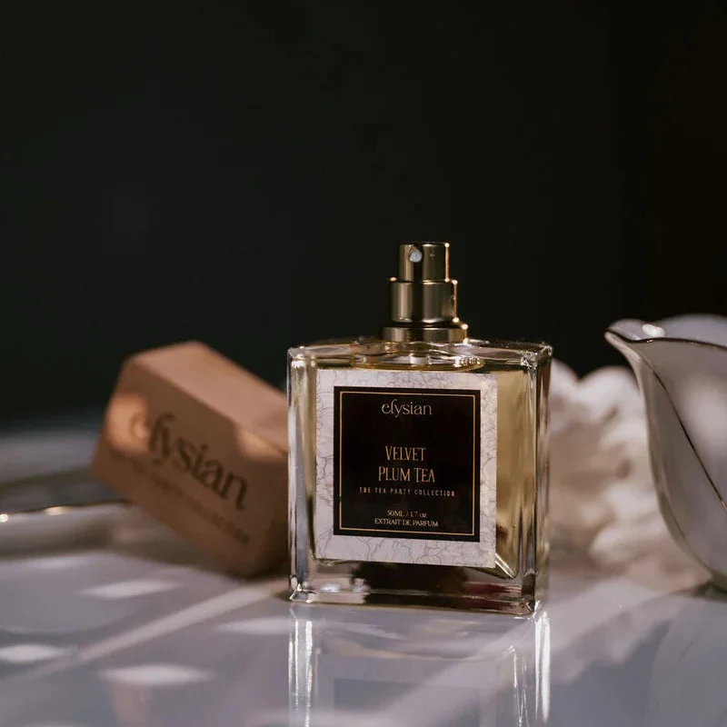 A dark velvet drape of scent, steeped in quiet decadence. Muddled plums spill their inky sweetness over smoldering black tea leaves, while bergamot and golden apple shimmer like jeweled highlights in the dusk. Osmanthus and Rose de Mai soften the edges, petals brushed against velvet, before honey warms the blend with a slow, golden glow.