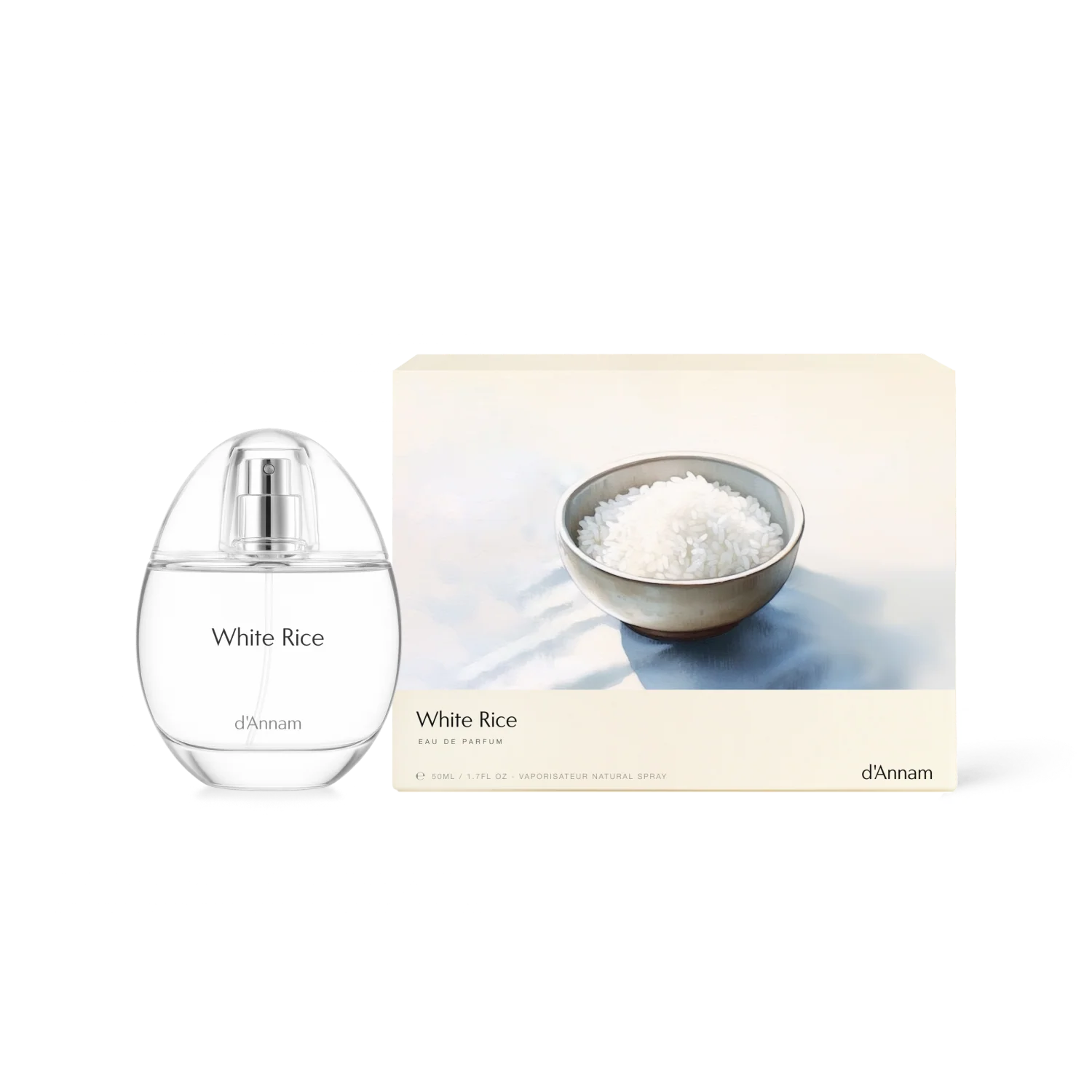 "White Rice EDP is intended as a skin scent. Rice's aroma is beautiful, yet so delicate. To emphasize its sweetness and unique essence, we incorporated milky and floral notes such as pandan, jasmine, and white musk. Unlike the amorphous softness of cotton candy, rice grain has structure to it, which we underscored by adding a hint of nuttiness from orris and woody tones."